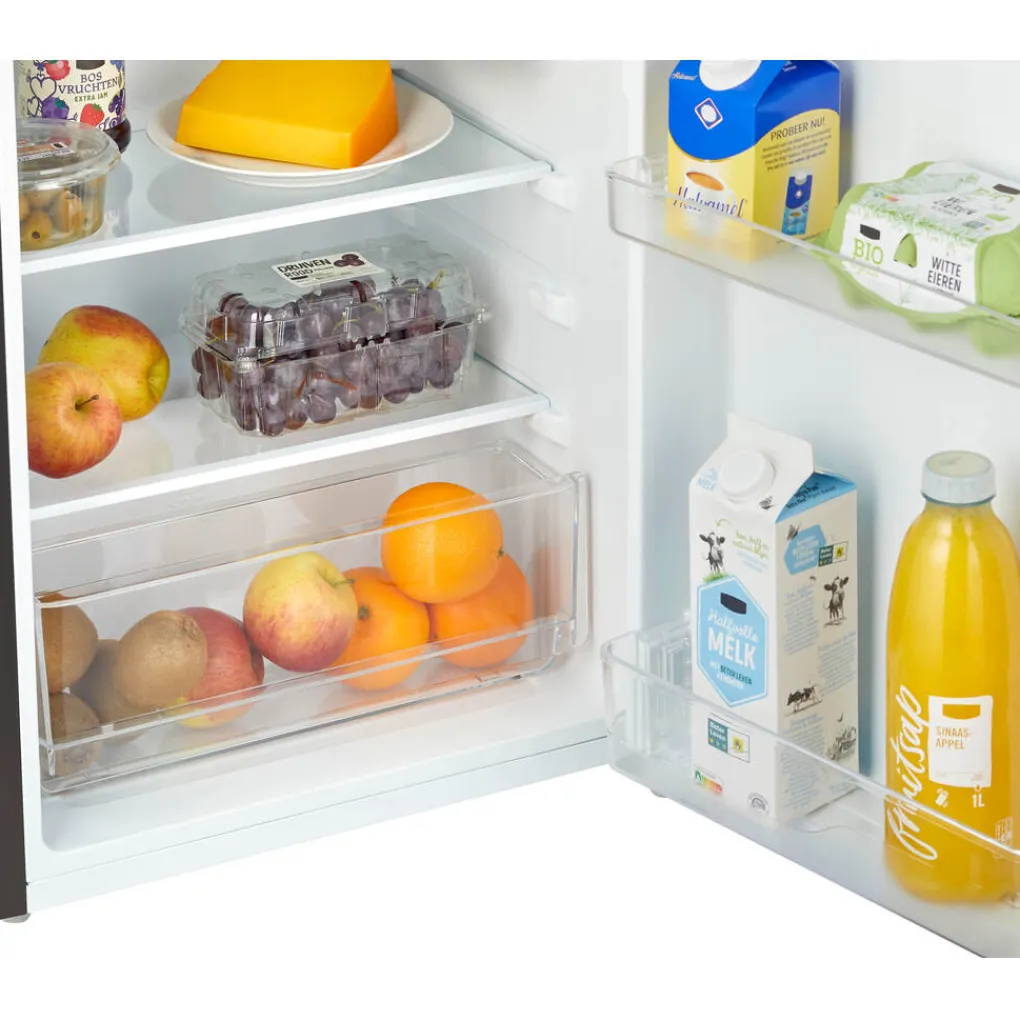 Koelgedeelte met vriesvakDeze tafelmodel koelkast heeft een netto inhoud van 80 liter. Er zitten 2 glasplaten in waarvan er 1 verstelbaar is. Deze glasplaten zijn gemaakt van speciaal gehard glas. Bovenin de koelkast bevindt zich een vriesvak waarin je producten kunt invriezen.