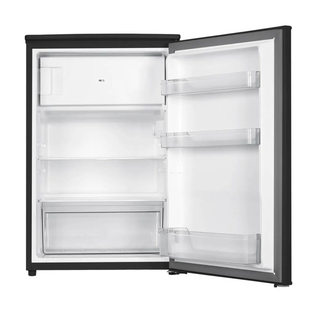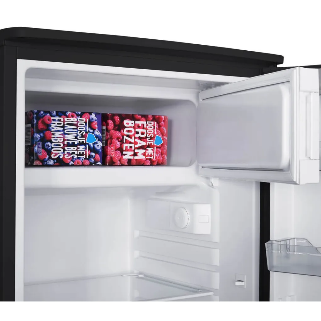De koelkast heeft een strakke uitstraling dankzij de zwarte kleur in combinatie met de geïntegreerde handgreep. Hij heeft een hoogte van 84,5 cm en is hierdoor ideaal om andere keukenapparaten zoals een magnetron of bakoven op te plaatsen.