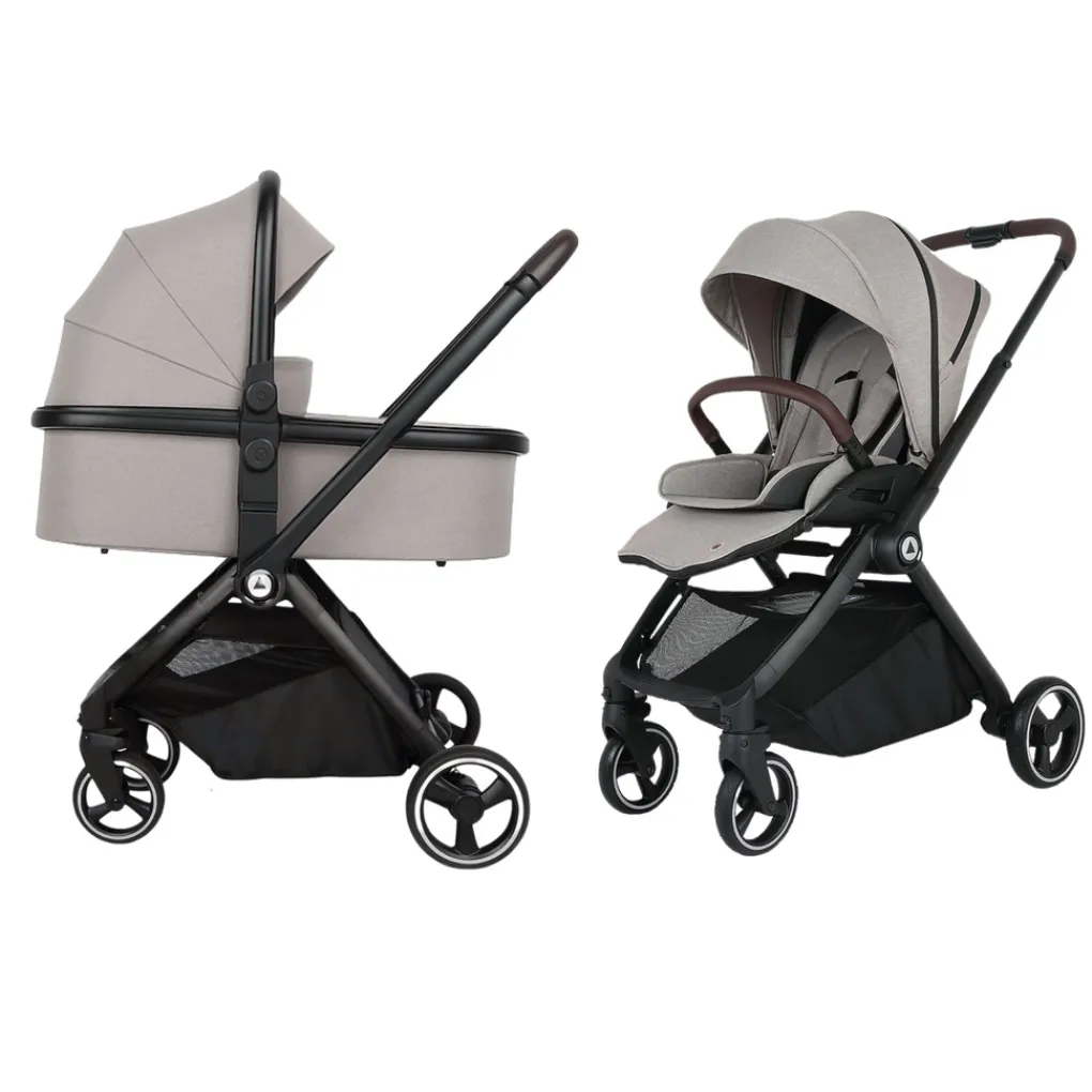 Het compact inklapbare ontwerp maakt deze kinderwagen ideaal voor onderweg. Zowel het frame als het reiswiegje zijn eenvoudig op te vouwen, waardoor je de kinderwagen moeiteloos overal mee naartoe neemt.