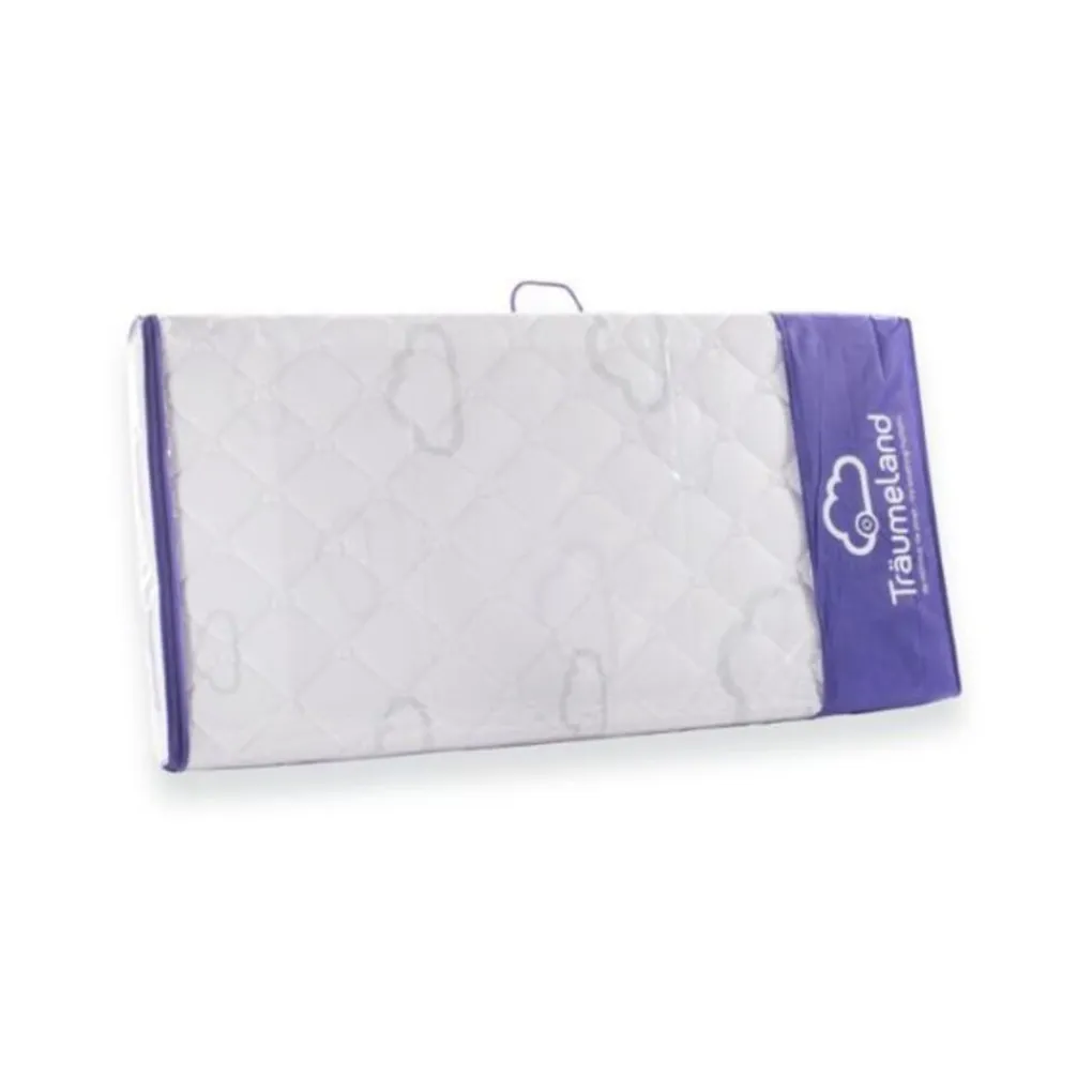 Het Oase matras van het merk Träumeland is geschikt vanaf de geboorte tot 4 jaar. Je kunt het matras vanaf 12 kg omdraaien van baby- naar kinderzijde. De veiligheidsranden op de lange zijden van het matras zorgen ervoor dat de baby op deze rand kan staan in het baby bed. Multifunctionele tijk ‘sleep safety’ heeft een geïntegreerde bescherming tegen vocht. De matraskern blijft altijd droog en het vocht word geabsorbeerd op de oppervlakte. De matraskern is gemaakt Cellpur-schuim. Cellpur is een hoogwaardig koudschuim met een uitstekende vochtregulatie. De integratie van cellulosedeeltjes zorgt voor een aangenaam droog klimaat met tegelijkertijd eersteklas comfort. Daarnaast heeft het matras hypoallergene/anti-allergische werking. Het matras is voorzien van een afneembare en deelbare tijk.