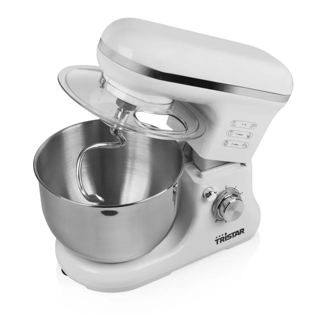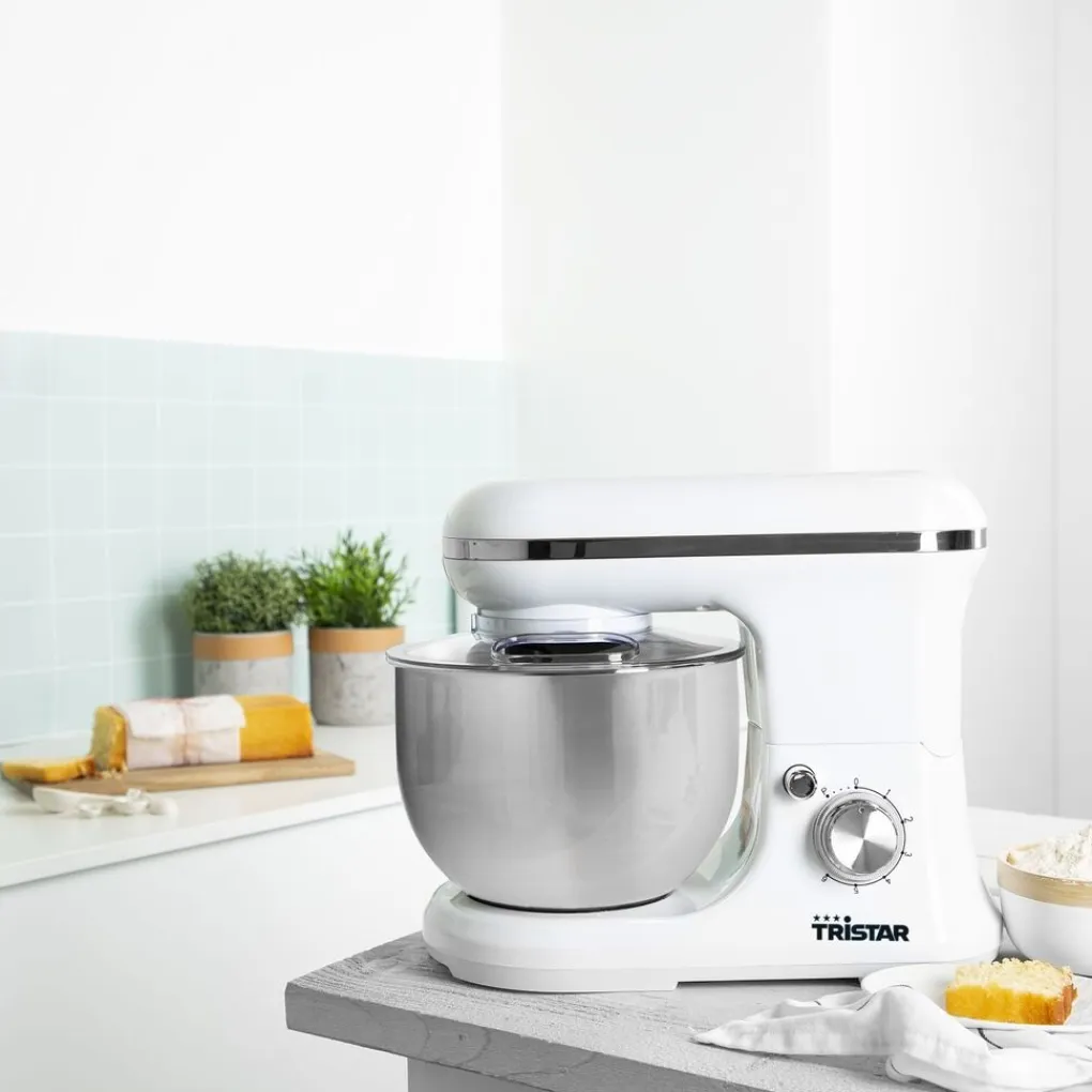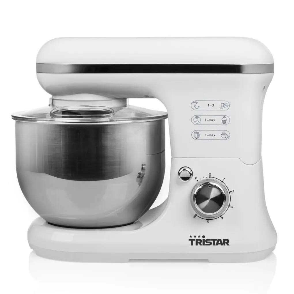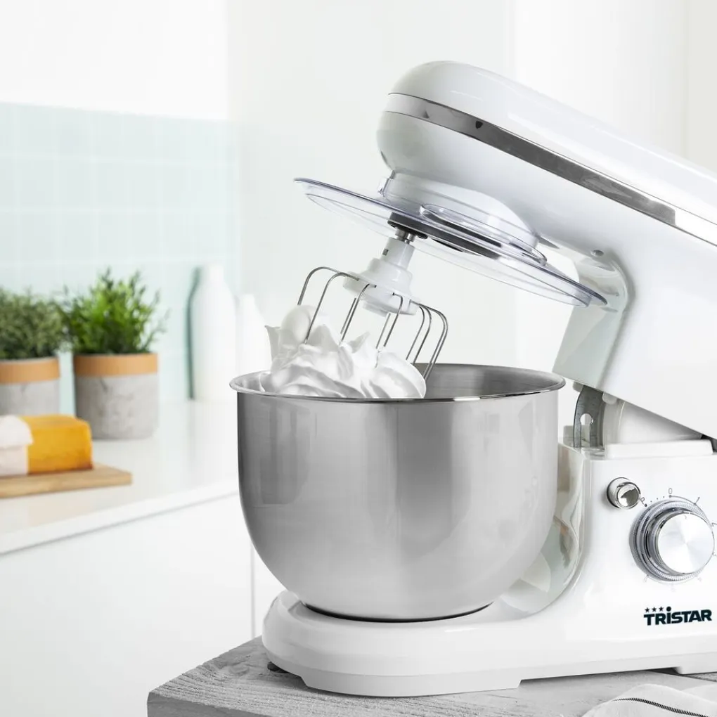 De Tristar Keukenmachine heeft een planetaire mixbeweging. Dit wil zeggen dat alle ingrediënten naar het midden van de kom worden geduwd. Hierdoor mengt en kneedt de mixer alle ingrediënten snel tot een egaal beslag of deeg. De bijgeleverde garde is ideaal voor het kloppen van slagroom. Om deeg te maken voor brood gebruik je de deeghaak en de mixer is perfect voor cakebeslag.