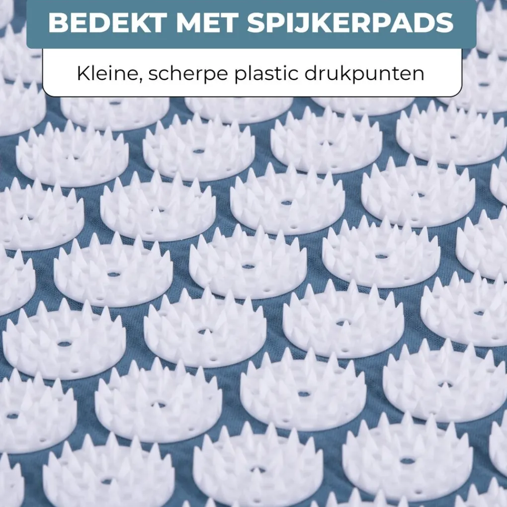 Om ook je hoofd en/ of voeten van dezelfde drukpunt ondersteuning te voorzien, wordt de mat geleverd met een kussen waarop dezelfde spijkerpads zitten. Hierdoor pak je bij het liggen op de mat met gebruik van het kussen ook je nek mee, of de zolen van je voeten. Bijvoorbeeld wanneer je aan het werk bent op kantoor of in de avond op de bank zit. Dit kan je helpen (spannings)hoofdpijn weg te nemen of verlichting aan je voeten bieden, bijvoorbeeld wanneer je een baan hebt waarbij je veel moet staan of lopen.