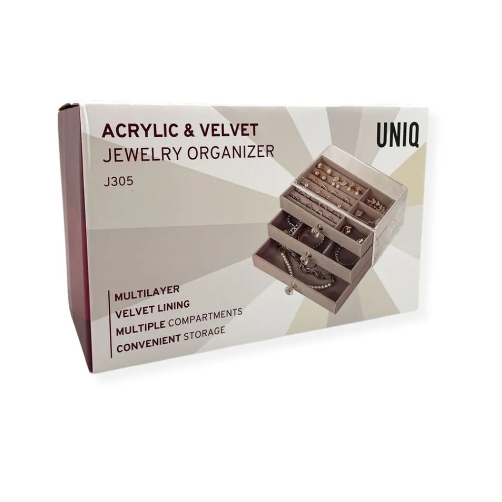 Houd ringen, armbandjes en oorbellen netjes bij elkaar met de UNIQ acryl sieraden organizer met 3 laden. Het kristalheldere ontwerp laat al je favoriete pieces schitteren, terwijl zachte fluwelen inlays krassen voorkomen.