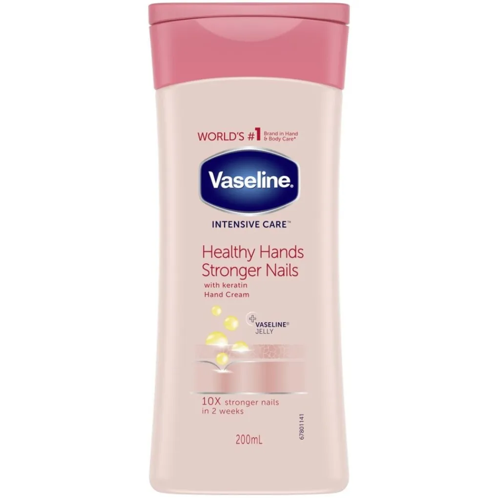 Herstel droge, gebarsten handen en versterk je nagels met Vaseline Healthy Hands & Stronger Nails Handlotion. Deze hydrateert en beschermt je handen. Je nagels zijn binnen 2 weken tien keer sterker dankzij de keratine in de crème.
