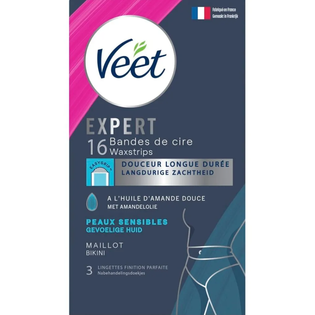 De Veet Expert Waxstrips voor je Bikinilijn zijn geschikt voor de gevoelige huid en bieden langdurige zachtheid. Lees voor gebruik van Veet-Waxstrips zorgvuldig de voorzorgsmaatregelen op de verpakking.