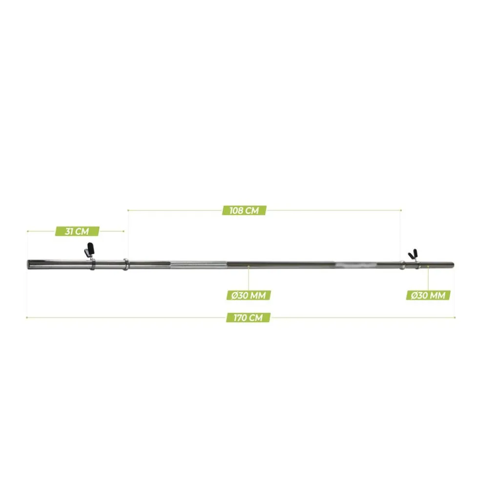 De VirtuFit halterstang is 170 cm lang en heeft een binnenmaat van 114 cm.