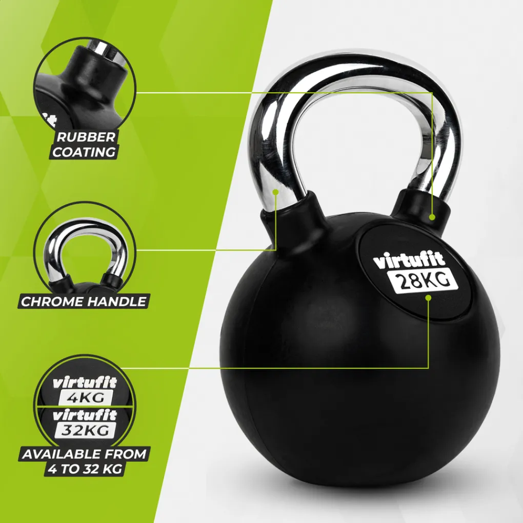 Deze kettlebell, omhuld in een beschermende laag van rubber en staal, is ontworpen om te presteren onder zware omstandigheden. Het gestroomlijnde design voegt niet alleen stijl toe aan je trainingsomgeving, maar biedt ook weerstand tegen slijtage en impact.