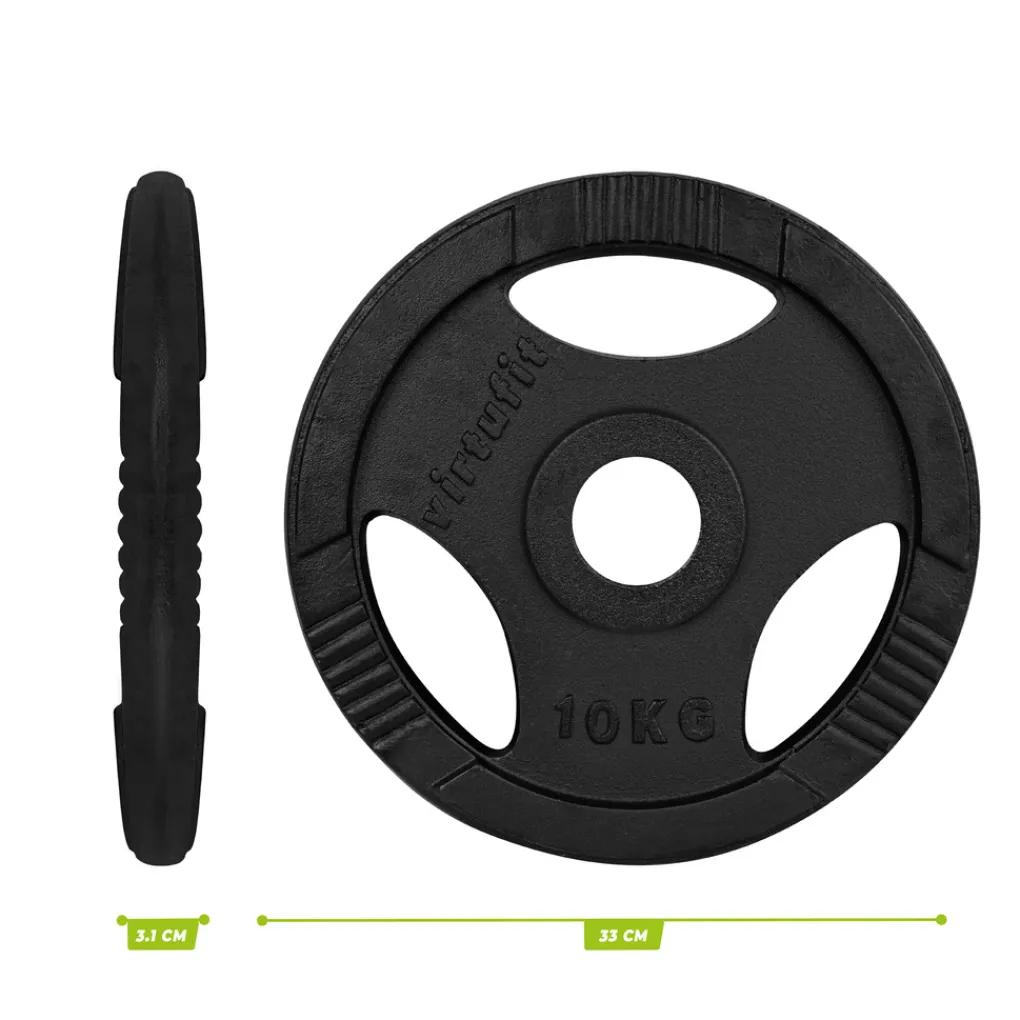 Of je nu de voorkeur geeft aan trainingen met een halterstang of juist zonder, onze olympische halterschijf van gietijzer past zich aan jouw wensen aan. Dankzij de gestandaardiseerde opening van 50 mm kun je deze schijf moeiteloos aan verschillende halterstangen bevestigen. Bovendien is het robuuste gietijzeren materiaal uitermate geschikt voor directe grondoefeningen, waardoor je je training nog gevarieerder kunt maken.