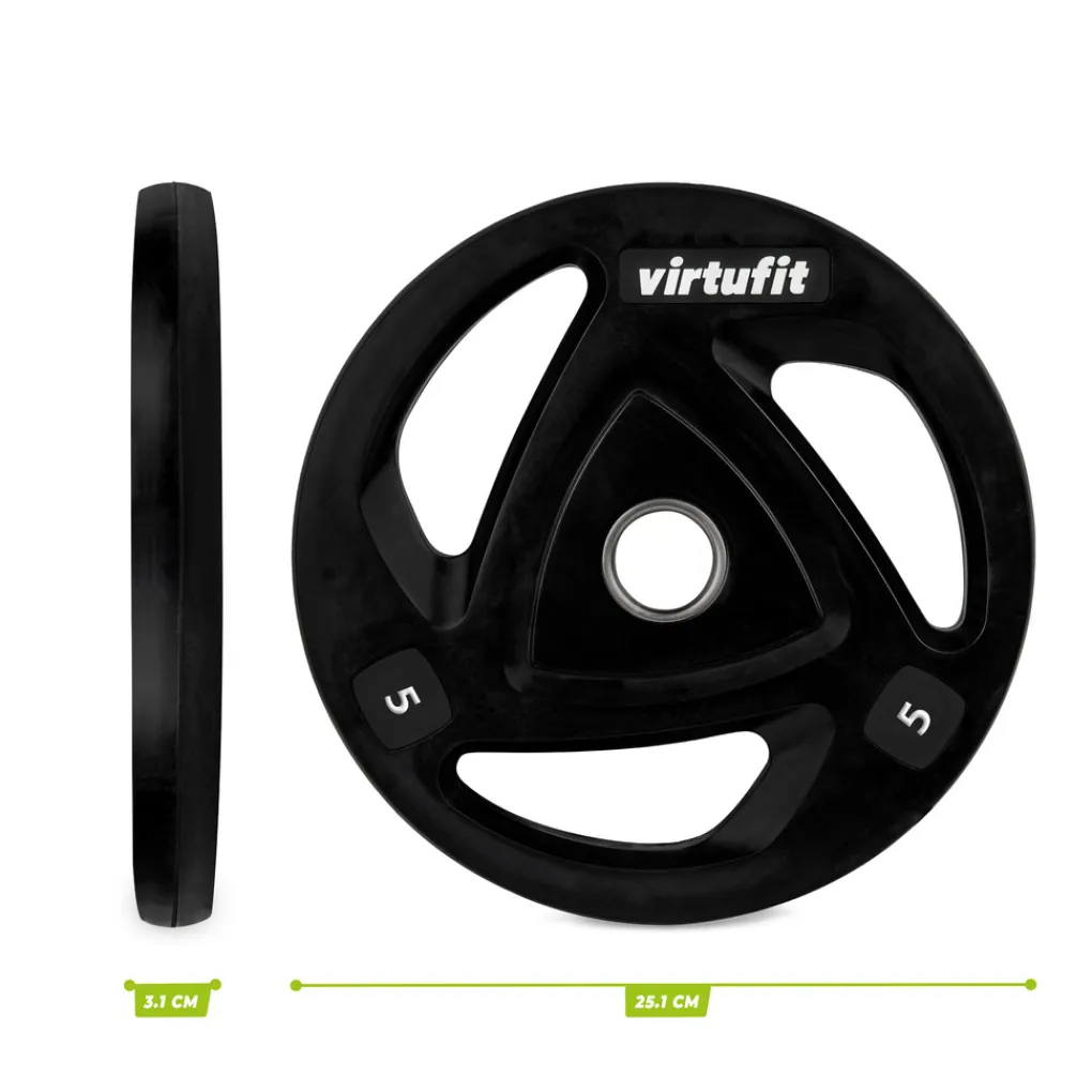 Of je nu de voorkeur geeft aan trainingen met een halterstang of liever zonder traint, onze olympische halterschijf past zich aan jouw behoeften aan. Dankzij de gestandaardiseerde 50 mm opening kun je deze schijf gemakkelijk op verschillende halterstangen bevestigen. Bovendien is het rubberen materiaal ideaal voor directe grondoefeningen, waardoor je nog meer variatie aan je training kunt toevoegen.