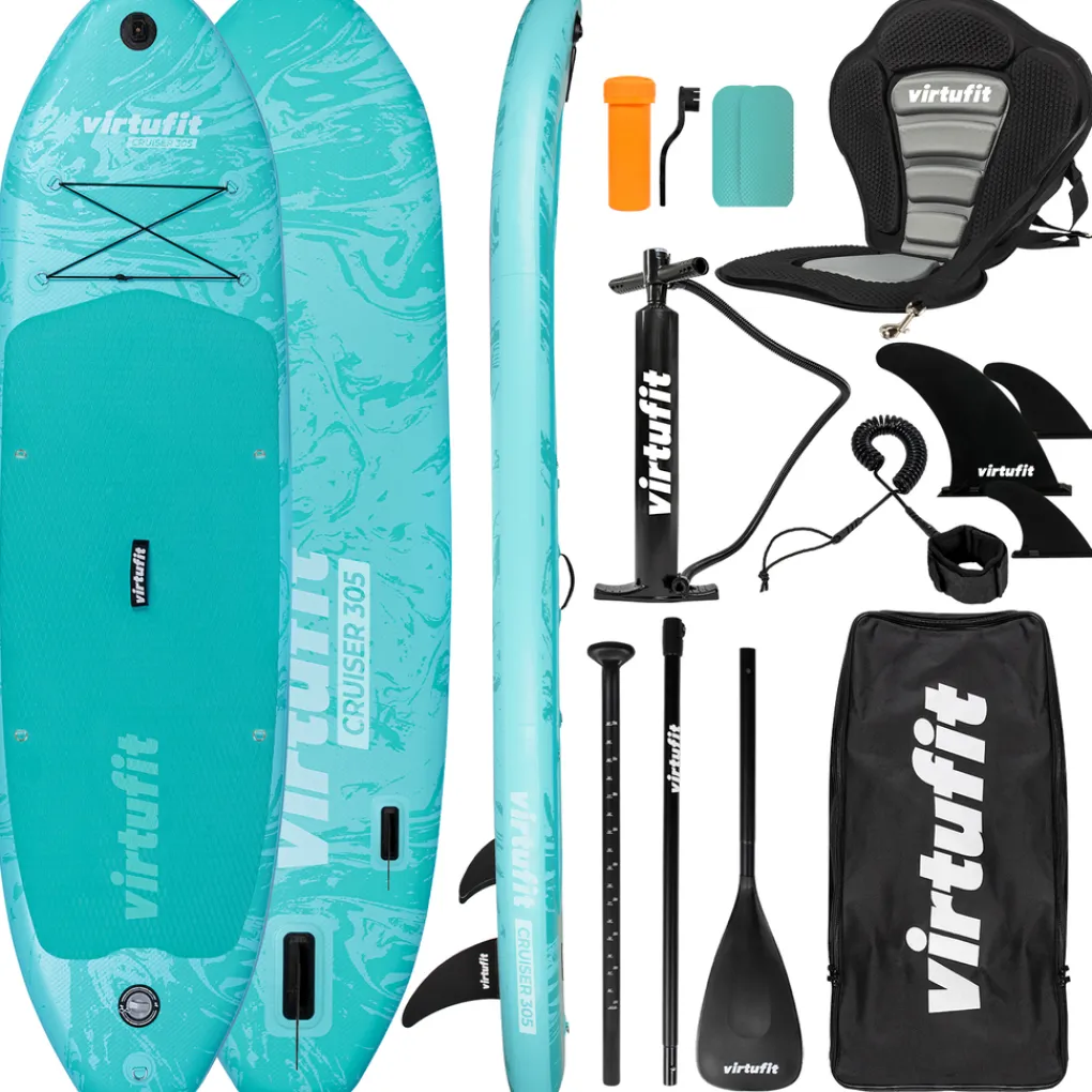 Opblaasbaar Supboard met kajak zitjeHet Virtufit Supboard Cruiser 305 wordt geleverd met kajak zitje. Dit geeft de mogelijkheid om niet alleen staand te suppen, maar ook zittend te peddelen. Tevens heeft het board een anti-slip oppervlak waardoor je gegarandeerd langer kunt blijven suppen zónder een onverwachte duik te hoeven nemen. Wil je toch extra verzekerd zijn van een veilige Sup-ervaring, dan raden we aan om tijdens het suppen een zwemvest of drijfgordel te dragen.