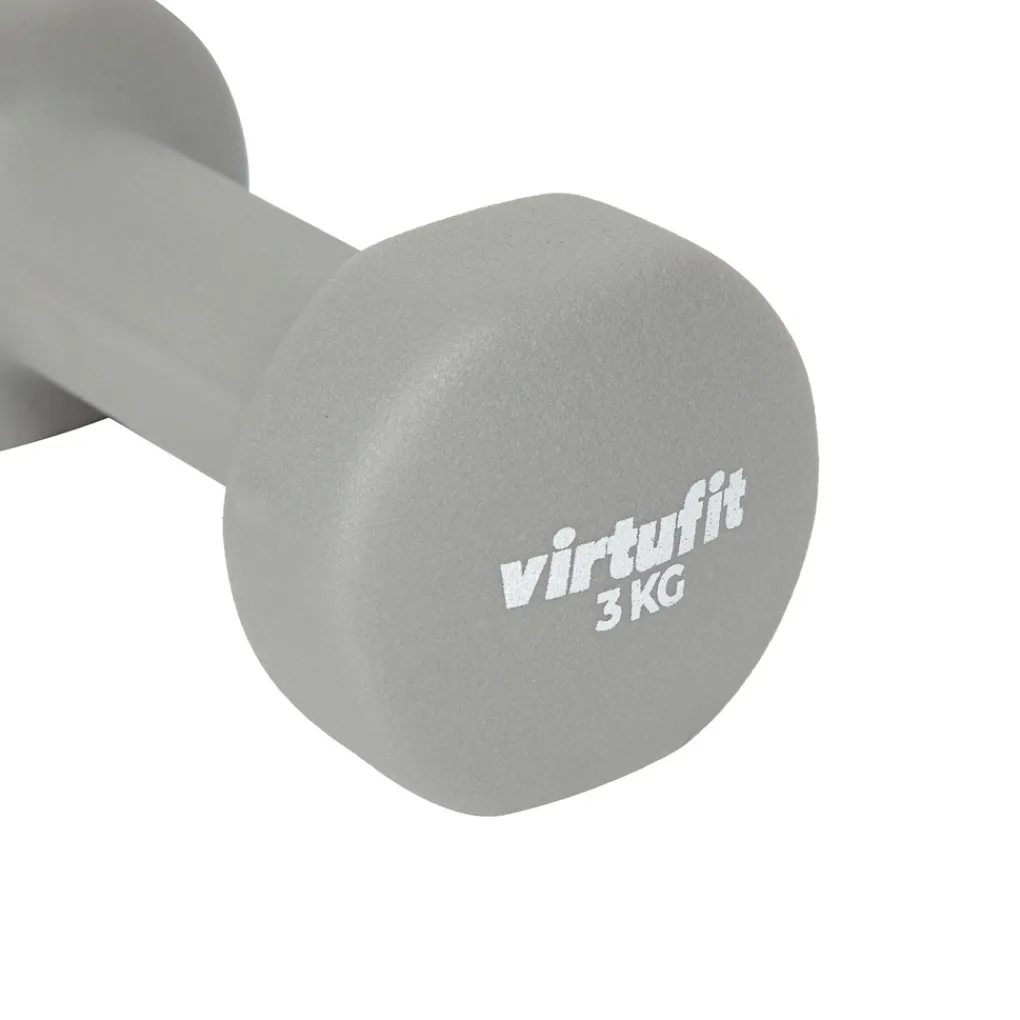De nieuwe VirtuFit Vinyl Dumbbells zijn verkrijgbaar in verschillende kleuren, waarbij elke kleur een ander gewicht heeft. De dumbbells variëren van 1 kg tot 5 kg: