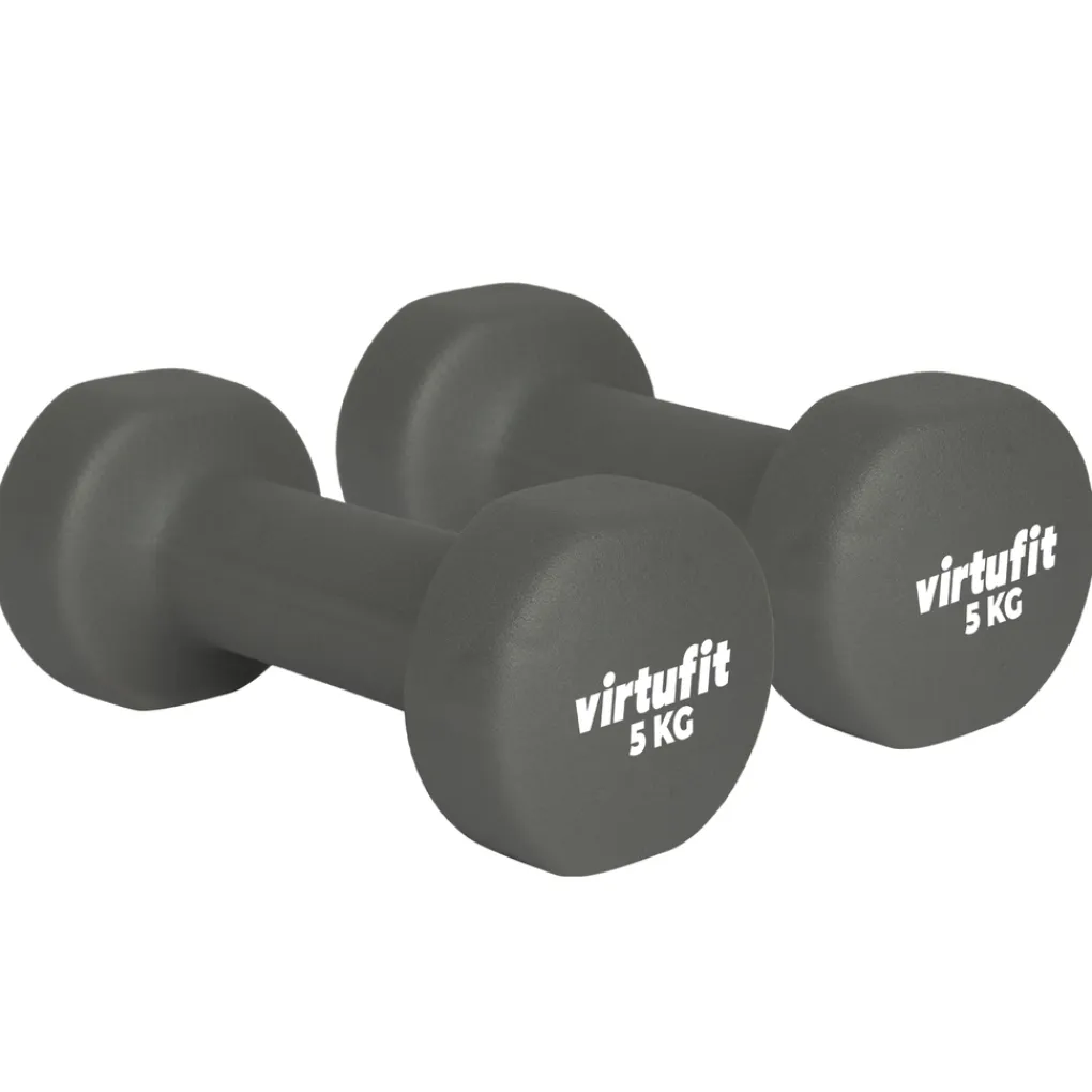 De nieuwe VirtuFit Vinyl Dumbbells zijn verkrijgbaar in verschillende kleuren, waarbij elke kleur een ander gewicht heeft. De dumbbells variëren van 1 kg tot 5 kg: