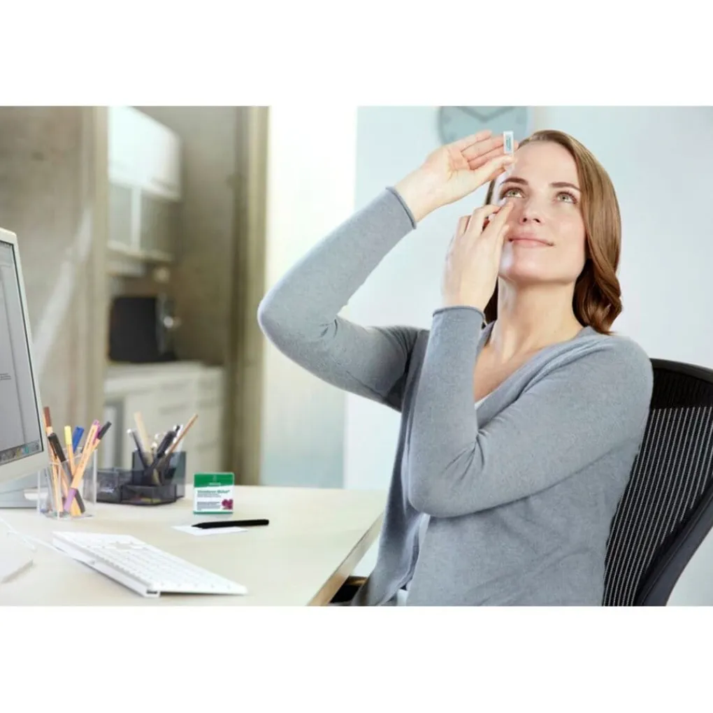 Indien nodig: 1 à 2 druppels in elk oog druppelen. De ampul openen door vlak voor het gebruik het platte dopje eraf te draaien. Knijp licht in de ampul en breng 1 of 2 druppels aan in je oog.
