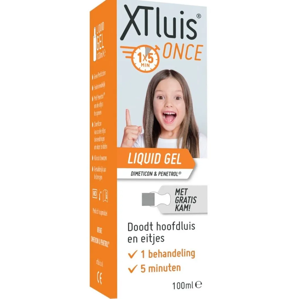 Bestrijd hoofdluis met XT-Luis Once Liquid Gel. De vloeibare gel doodt zowel de hoofdluizen en de eitjes (neten) in één behandeling van 15 minuten.